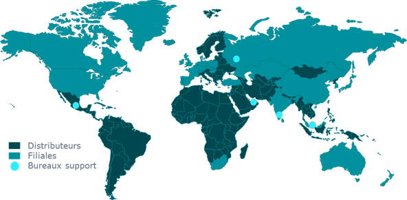 • Plus de 100 distributeurs couvrent le reste du monde